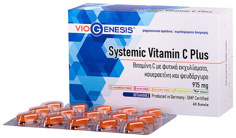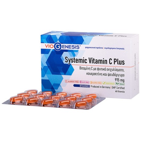 Το VioGenesis Systemic Vitamin C Plus αποτελεί συνδυασμό βιταμίνης C & Ε, ψευδαργύρου, α-λιποϊκού οξέος, κυστεΐνης και φυτικών εκχυλισμάτων, τα οποία παρουσιάζουν διάφορες ιδιότητες.
